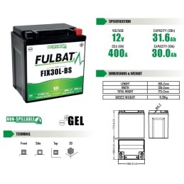 FIX30L-BS BATTERIA FULBAT A GEL 12V 30AH MOTO SCOOTER QUAD CROSS YIX30L-BS 42550
