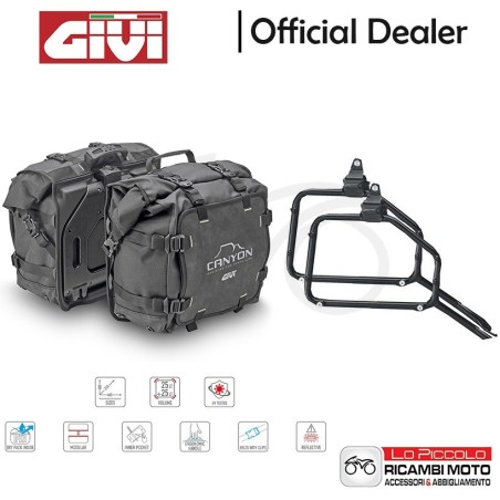 Le borse laterali GRT720 Canyon, grazie ai passanti laterali di cui sono dotate, permettono di modulare la configurazione del bagaglio per adattarsi alle tue esigenze di carico, dalle brevi escursioni in moto di un giorno ai viaggi piu' lunghi ed impegnativi, da affrontare con l'aggiunta delle GRT722 come ulteriori carico laterale, resiste a forti piogge e condizioni estreme.