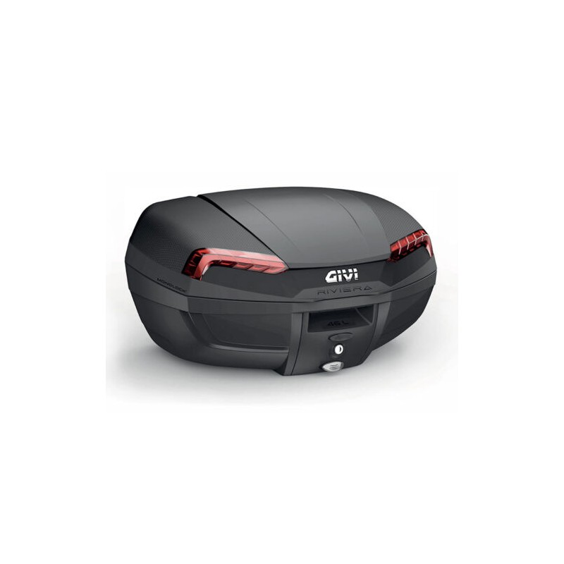 Il RIVIERA è il nuovo top di gamma dei bauletti GIVI con attacco MONOLOCK. Il bauletto è stato realizzato utilizzando un sistema di stampi, detto sottosquadro, che permette di ottenere una struttura dotata di maggiore rigidità lungo la linea di contatto dei due gusci… mantenendo linee filanti e arrotondate che avvantaggiano l’aspetto aerodinamico. L’estetica esterna risulta pulita e la struttura complessiva del prodotto è molto più resistente rispetto al normale standard, a parità di materiale.