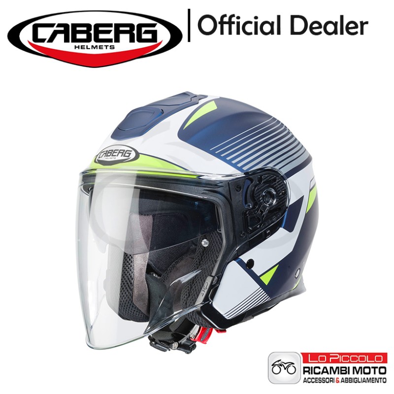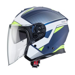 CASCO JET CABERG FLYON FIBRA DI VETRO RIO K1 BLU OPACO YAMA/BIANCO/GIALLO FLUO/ARGENTO DOPPIA VISIERA