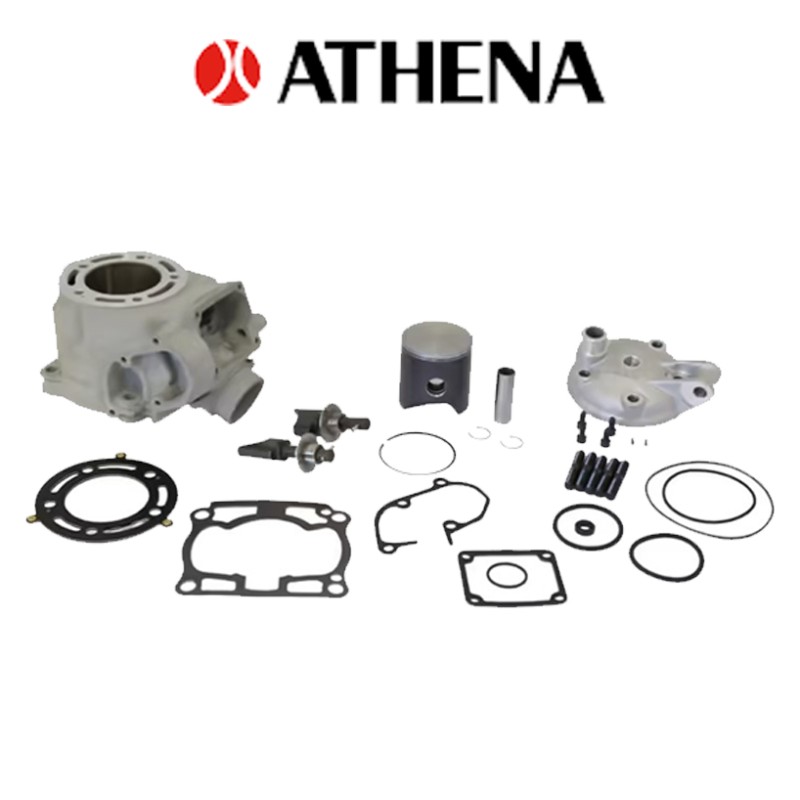 Il kit comprende il cilindro in alluminio di alta qualità con alesaggio aumentato, testa cilindro, pistone completo con spinotto pistone e anellini e le guarnizioni necessarie.