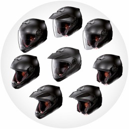 Il casco può essere utilizzato in ben otto configurazioni distinte. N40-5 GT è, infatti, caratterizzato dalla presenza di tre elementi (visiera, mentoniera protettiva amovibile e frontino) che possono essere montati sul prodotto congiuntamente, a coppie, singolarmente oppure da questo rimossi totalmente.