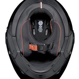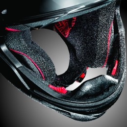 Integrate nella cuffia (pertanto, amovibili e lavabili), le bandelle sottogola favoriscono la calzata del casco, nonché la sua vestibilità.