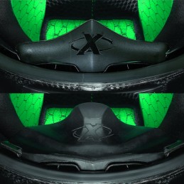 7 - RACETRACK AERODYNAMIC SPOILER (RAS) - E’ un’appendice aerodinamica sviluppata con il contributo dei piloti ufficiali Nolan e X-lite, nonché frutto di studi CFD (Computational Fluid Dynamics) e di verifiche in galleria del vento. La conformazione della sua parte superiore riduce la resistenza aerodinamica del casco e ne migliora la stabilità alle alte velocità in posizione di guida sotto carena, soprattutto in continuità con l’eventuale appendice posteriore presente sulla tuta del pilota; la conformazione delle sue parti laterali migliora, invece, la stabilità del casco alle alte velocità in uscita dal cupolino. Può essere rimossa dal casco in funzione delle condizioni di utilizzo e/o situazioni di guida, per esempio in presenza di un passeggero.