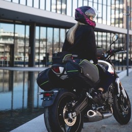 Cinghie di compressione del carico, permettono inoltre di stabilizzare la borsa al telaietto laterale