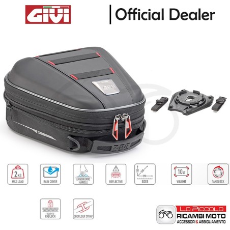Borsa da sella termoformata, 10 lt, dotata di sistema TANKLOCK. Si fissa sulla sella della moto tramite l'utilizzo della base di aggancio universale Seatlock S430, da fissare al posto del passeggero. Particolarmente adatto a moto sportive e turistiche.