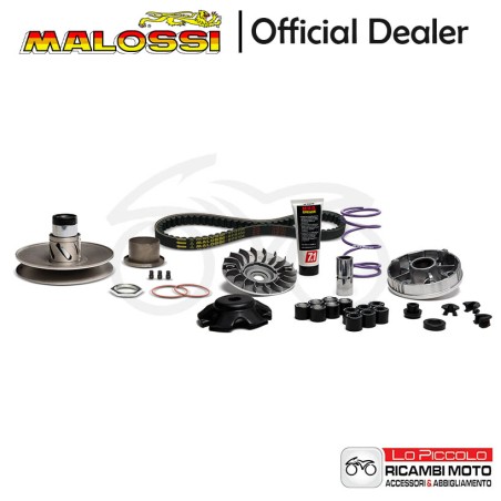 Al fine di sfruttare appieno il range del nuovo gruppo correttore di coppia e le potenze oggi disponibili sui mezzi da competizioni, é stata introdotta una nuova cinghia dentellata Malossi in Kevlar® (K) con sezione maggiorata e lunghezza aggiornata per assicurare in tutte le condizioni di funzionamento il massimo rendimento.